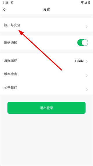 3、在设置界面里,点击账户与安全选项,进入账户安全相关页面。