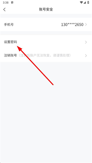 4、在账户安全页面中,点击设置密码选项,进入设置密码操作界面。