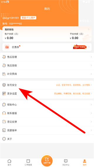 2、在个人页面中,找到并点击账号安全选项,进入账号安全设置页面。