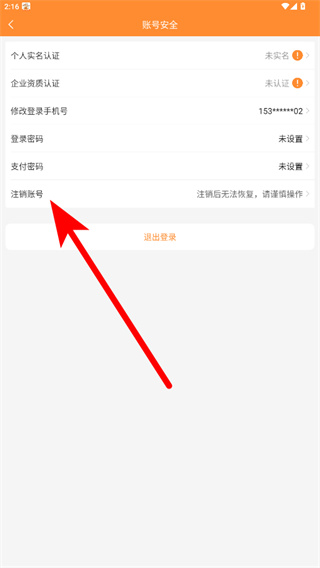 3、在账号安全页面里,点击注销账号选项,此时会弹出确认提示。