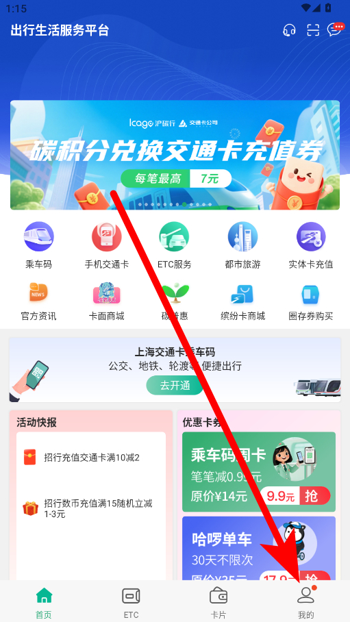 1、下载或升级“上海交通卡”APP。