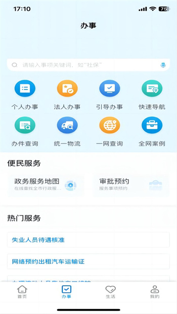 7、办事大厅、地图服务、个企通办、快速办理、一网查询、智能问答、全网案例、事项清单等快捷功能,快速开启办事服务与查询等功能,方便用户操作;