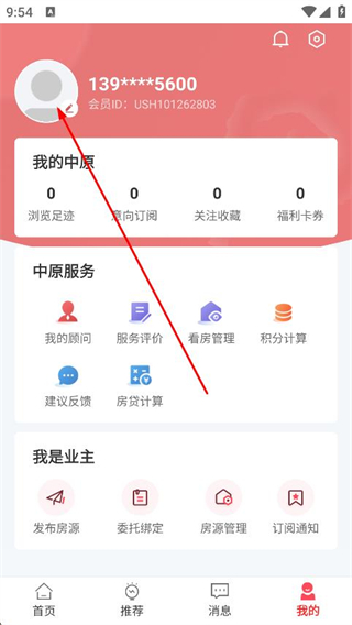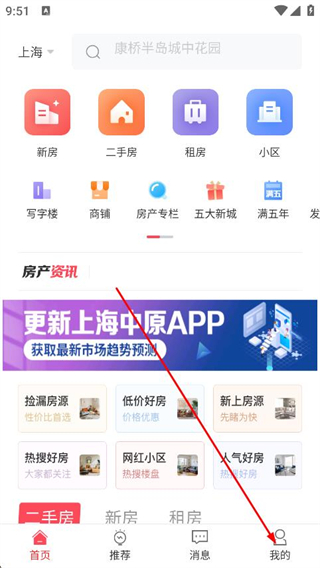 1、打开上海中原地产,点击底部导航栏最右侧我的选项。
