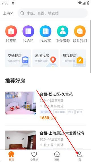 1、打开蘑菇租房,点击底部导航栏的我。