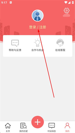 3、在我的页面中,找到并点击上方的登录/注册选项。