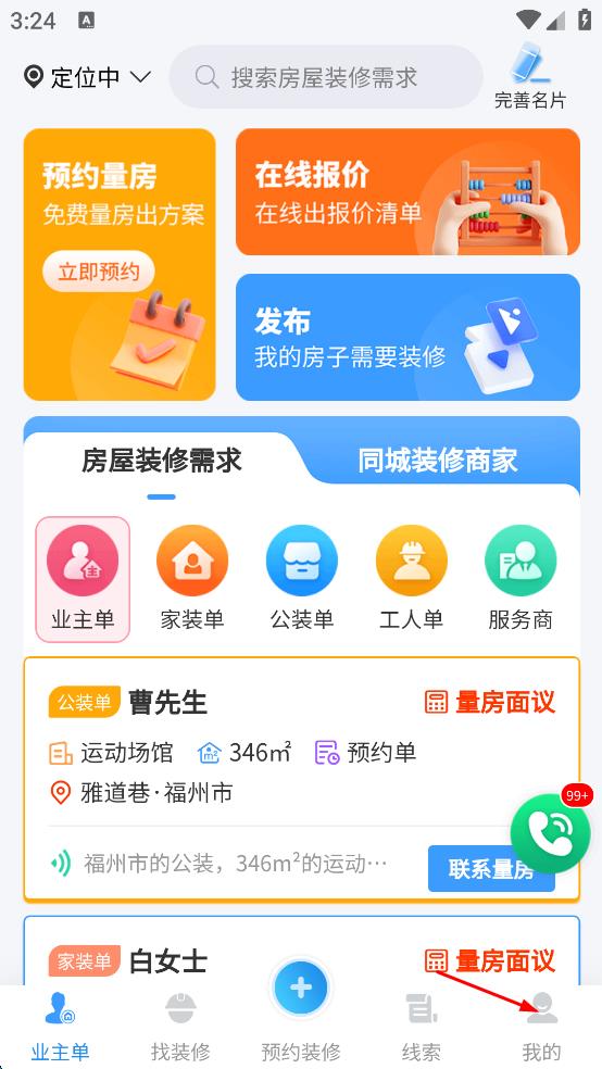 高品质业主装修需求,业主主动实时发布装修公司预约订单,高效时效的装修app!