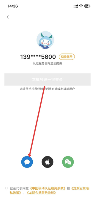 3、进入登录注册界面后,找到并点击手机号登录按钮。