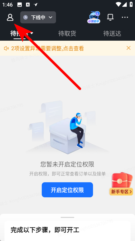 1、在蜂鸟众包首页,点击左上角个人图标,进入个人中心页面。