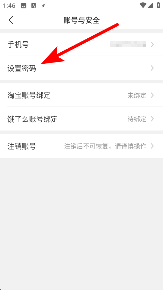 4、在账号与安全页面,点击设置密码,按提示完成密码设置操作。