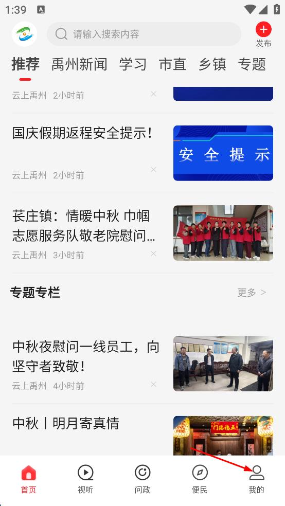 1、打开云上禹州,弹出用户协议与隐私政策提示,点击同意,进入软件首页。