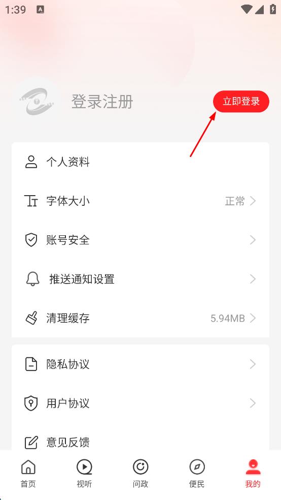 3、在个人页面上方看到“立即登录”按钮,点击“立即登录”,进入免密登录界面。