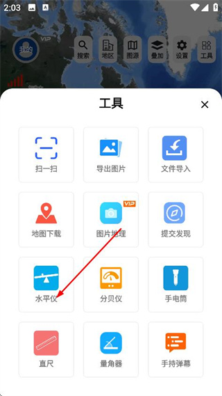 2、在工具选择页面,点击水平仪,进入水平仪功能页面。