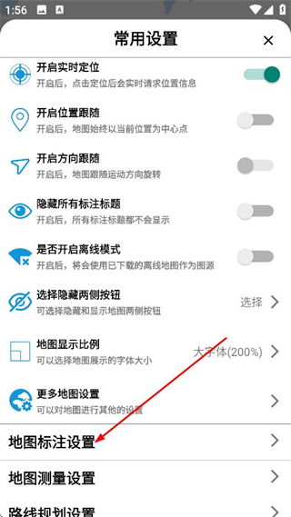 2、在常用设置页面,点击地图标注设置,进入地图标注设置页面。