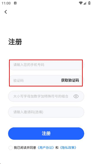 3、输入手机号码,并将收到的验证码输入对应框内。