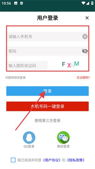 4、输入手机号、密码、图形验证码,点击登录,完成登录操作。