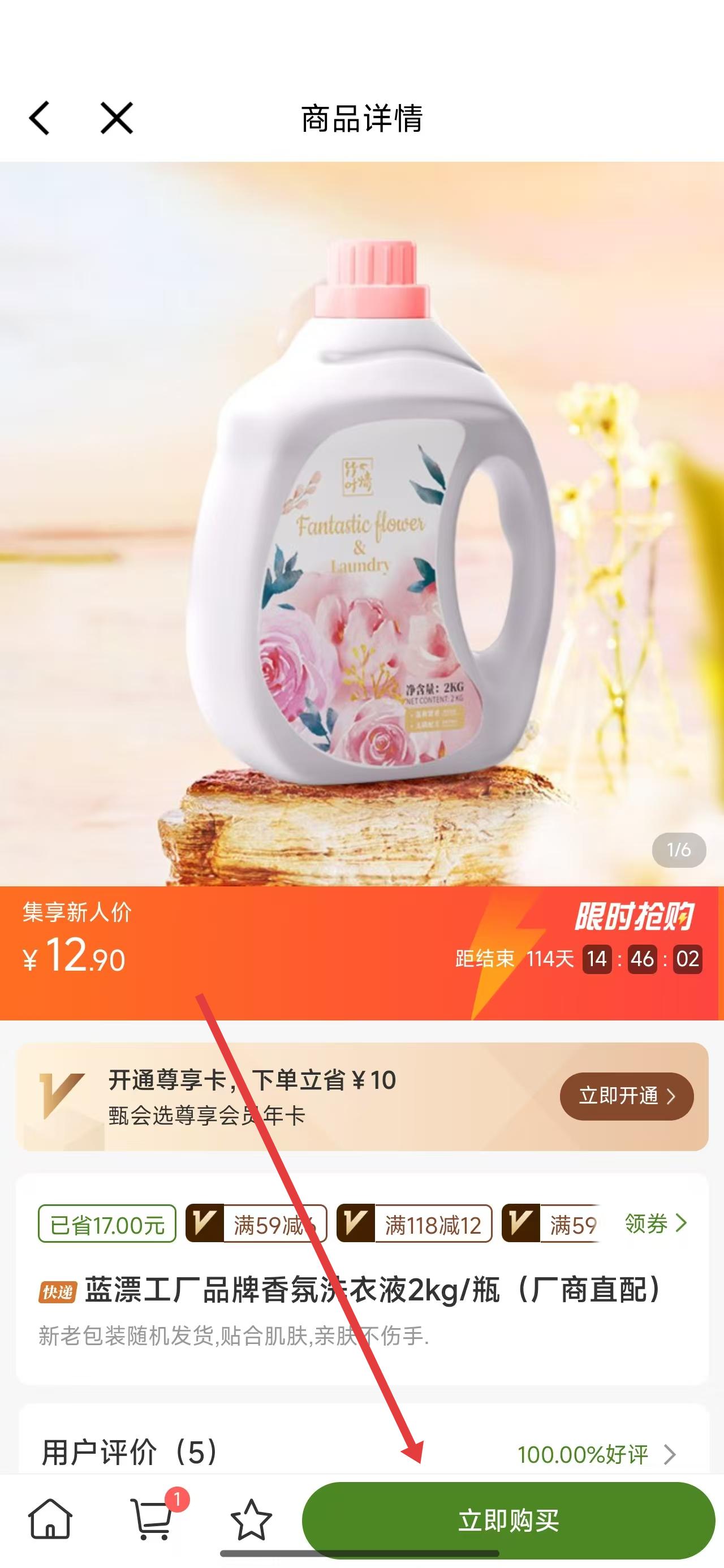 4、在跳转到商品详情页面后,点击下方立即购买按钮进行下单。