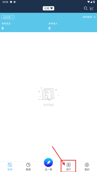 1、打开记账类APP,点击底部资产选项,进入资产管理页面。