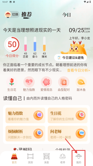 1、打开性格分析APP,点击底部我的选项,进入个人中心页面。
