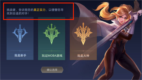 4、根据MOBA游戏经验选择新手或资深玩家标签,系统将自动匹配相应难度的对局。