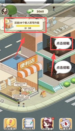 1、完成丰富的任务来获得更多的资金,到更多新开发的楼盘处去购买新楼房,坐等楼房升值。