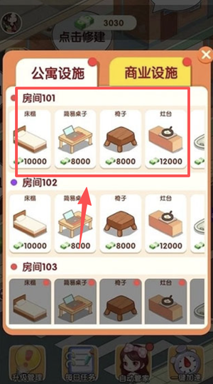 3、在装修界面,玩家可以进行装修,以便租出更高的价格。