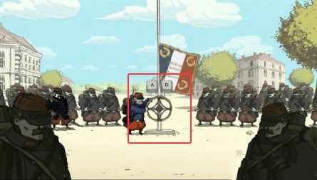 1、游戏开始后沿主路直行,看到指挥官举手并出现喇叭图标时,根据提示按下AD键触发剧情。