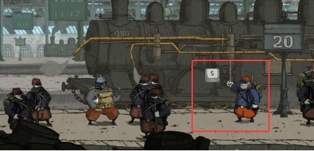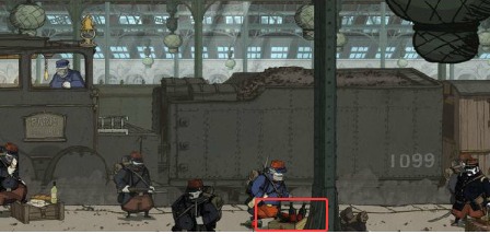 2、到达火车站后找到欺凌场景,调查起点处的铁链装置,向下拉动可驱散左侧士兵推进任务。