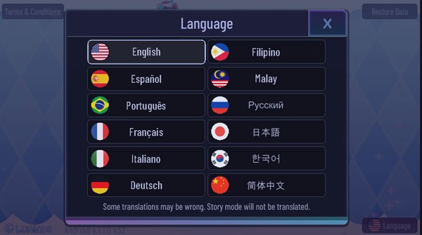 1、启动游戏后点击language选项进入语言设置界面,准备调整系统语言。