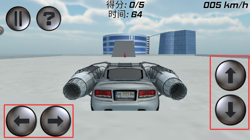 4、通过左侧按键控制车辆行驶方向,使用右侧按钮操控加速与倒车功能操作。