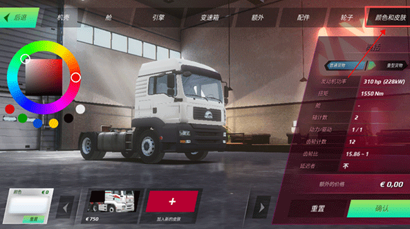 4、车辆改装系统支持深度定制调整,可以个性化调整卡车各项参数配置,打造专属座驾满足不同驾驶需求和偏好选择。