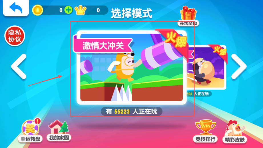 糖豆人吃鸡赛里能开启多人战斗玩法,可玩的花样特别多。进入游戏后可以选自己喜欢的模式匹配玩家组队,靠实力活到最后。关卡玩法丰富,还有不少角色供你挑选,能体验多人竞技的乐趣,随时打开都能玩一局。