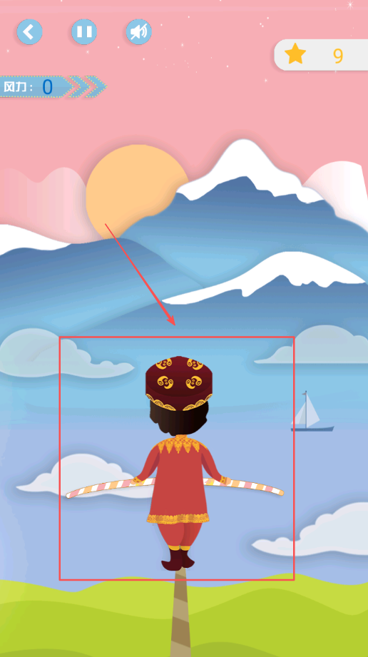 3、然后开始在钢丝上前进,过程中留意出现的大鸟或炸弹,这些干扰出现时要赶紧调整姿态保持平衡不坠落。