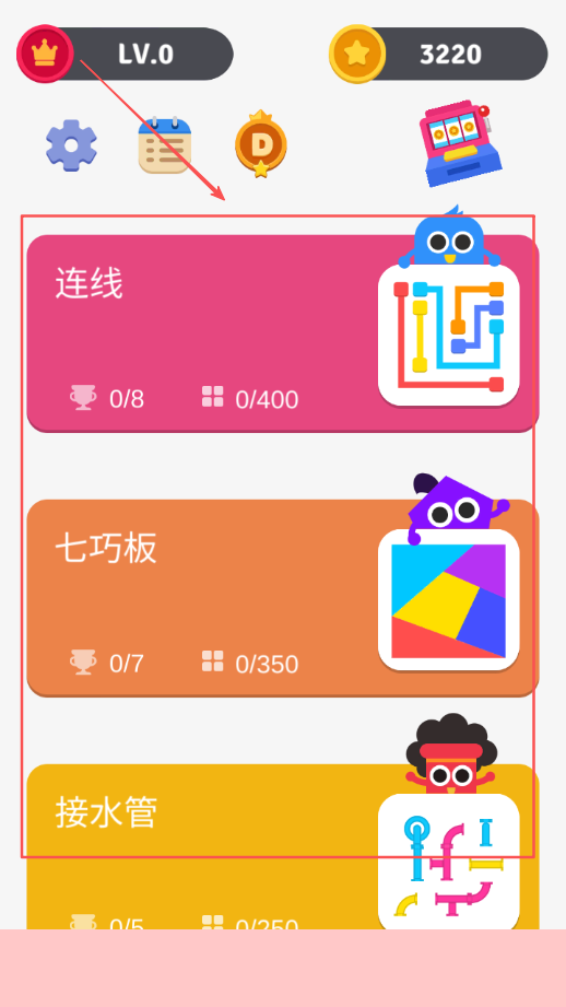 3、然后开始尝试解开小游戏的关卡,刚开始难度不高,慢慢适应后再挑战更难的内容,过程中注意锻炼操作手感。