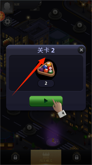 2、闯关模式设计有渐进式难度挑战,前期要求简单进袋,后期需要完成特定顺序击球或实现多球连锁反应。