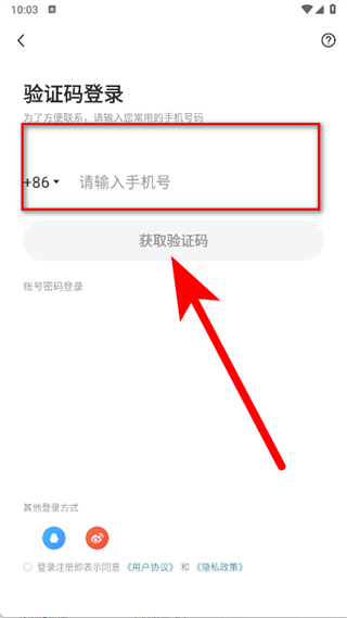 3、在验证码登录页面,输入手机号后,点击获取验证码。