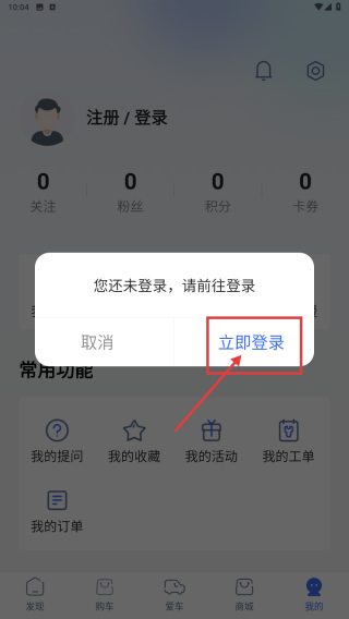 3、在提示框中,点击立即登录按钮,进入登录页面。