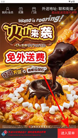 1、打开达美乐比萨APP,在首页点击右下方入菜单按钮。