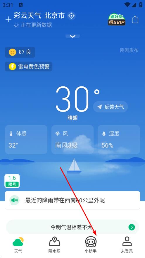 1、打开彩云天气APP,点击底部导航栏中的小助手图标。