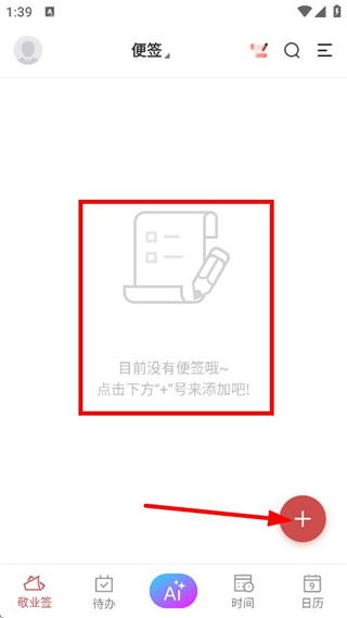 1、在便签页面,点击右下角+的符号,即可进入新增敬业签页面。