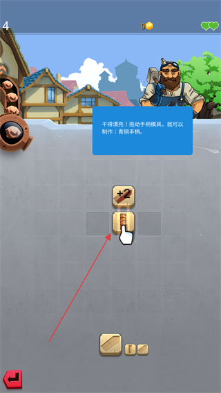 4、完成青铜手柄制作,获取新道具,为后续打造更高级装备做准备。