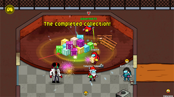 2、在限定时间内屏幕上方绿色倒计时框显示剩余时间,在地图场景中寻找彩色方块等目标物品并靠近收集。