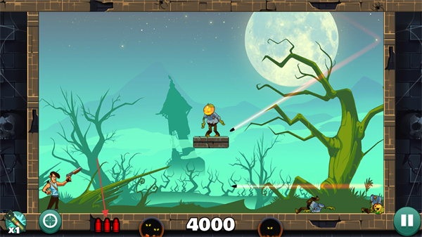 2、僵尸出现后,滑动屏幕或点击射击按钮发射弹药攻击,像南瓜头僵尸。