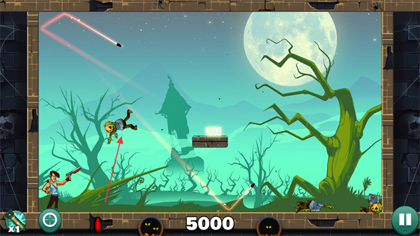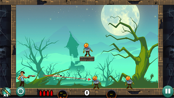 4、有限子弹资源限制:每关提供的子弹数量固定且通常少于僵尸数量,玩家必须珍惜每一发子弹,通过精准弹射实现一发多杀,避免资源浪费导致挑战失败,提升玩法深度。