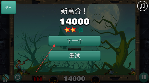 4、消灭关卡内所有僵尸,获得新高分提示后,点击下一个进入下一关。