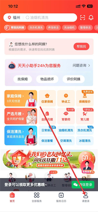 1、打开天鹅到家app,点击底部导航栏最右侧请登录选项。