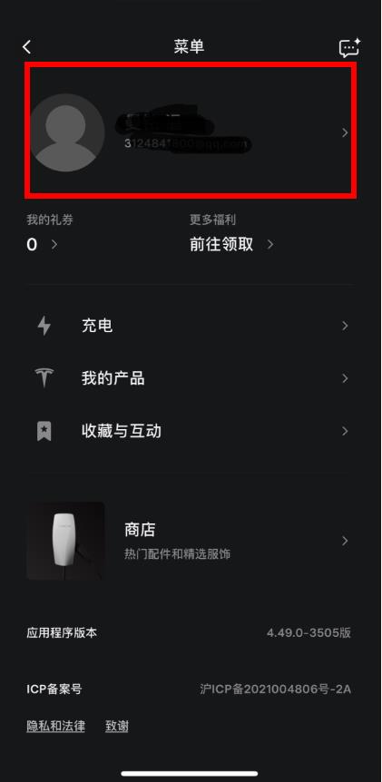 2、在菜单页面点击带有头像及邮箱信息区域,进入个人相关设置页面。