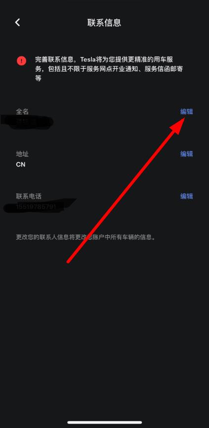 4、在账户信息界面里找到联系信息中的全名,点击右侧编辑选项。