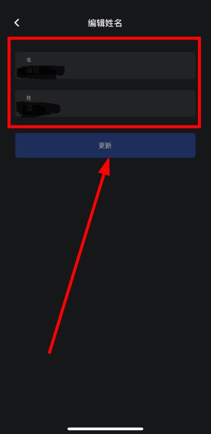 5、在编辑姓名页面输入新的名和姓,点击更新,完成名字修改。