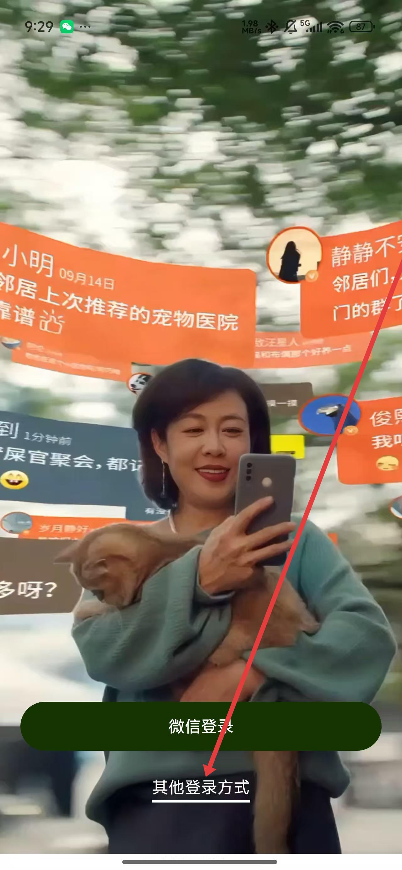 1、在万科物业登录页面中,可以点击其他方式登录,切换登录方式。