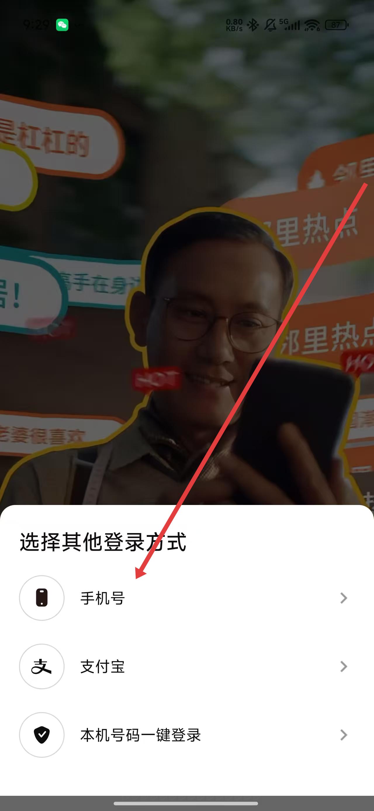 2、在选择其他方式登录中,可以点击手机号选项,使用手机号验证码方式登录。
